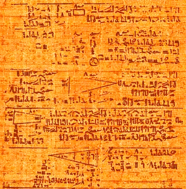 This papyrus functioned as a teaching manual for apprentice scribes preparing for administrative careers in Egypt’s complex bureaucracy. The problems progress systematically through increasingly difficult calculations, each demonstrating a specific technique that young scribes would need to master. Early problems show basic division and multiplication with fractions. Middle sections tackle practical applications: calculating pyramid slopes, determining the volume of cylindrical granaries, converting between different measurement units, and computing the strength of beer based on grain content.